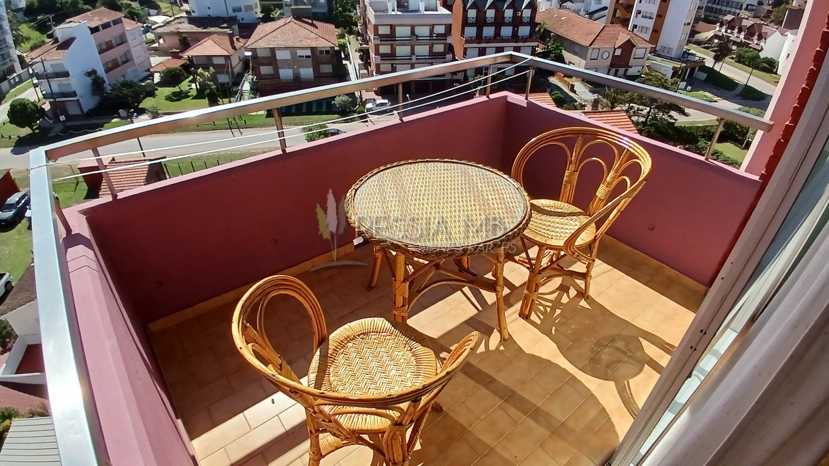 - Balcón semicubierto con vista a la ciudad.