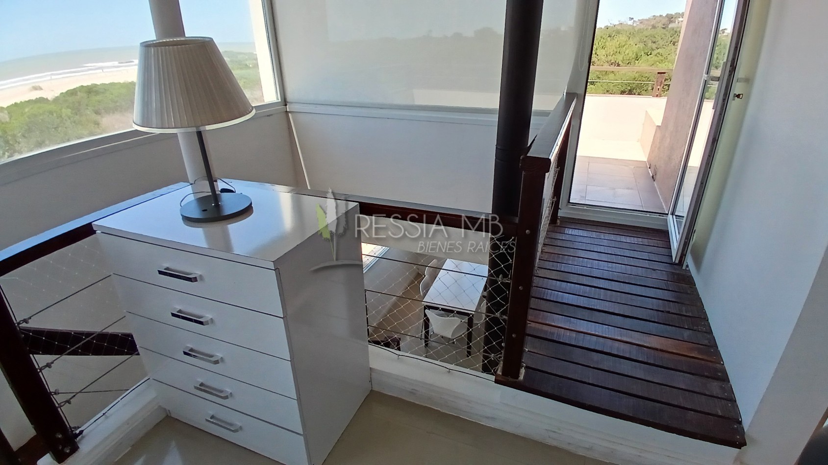 El segundo piso cuenta con un dormitorio en suite con jacuzzi, con vista al sector interno del complejo, aportando privacidad y confort. Además, suma un espacio tipo escritorio o estar, ideal para home office o lectura, con visuales directas al mar. En este nivel se encuentra también un segundo balcón que ofrece una vista única al mar y al bosque del sector sur.